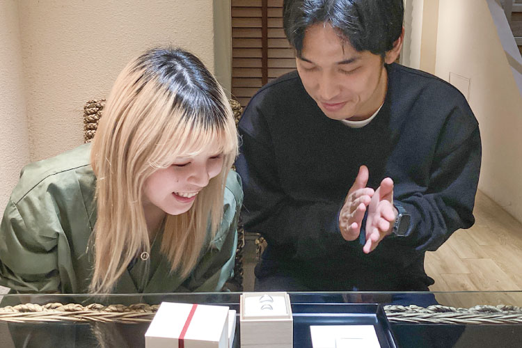 職人によって仕上げられ、完成した指輪とのご対面です。