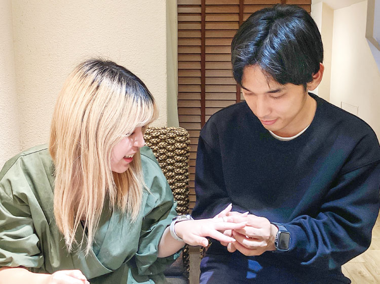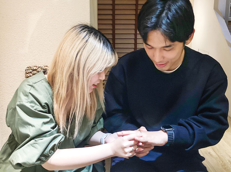 完成後のお受け取りの際は、お互いに指輪の交換をしていただきました!