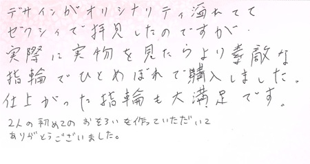 一目見てとても綺麗な指輪だったので、今から渡すのが楽しみです。