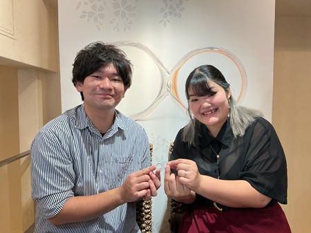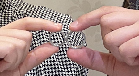実際に完成した指輪を見て、妻もとてもよろこんでいました。私も指輪を見て結婚した