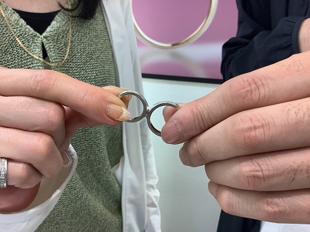 出来上がった指輪は結婚指輪と重ねてつけます。