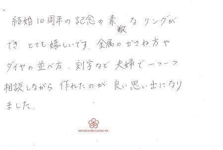 結婚30周年記念にふさわしいリングとなり満足しています。