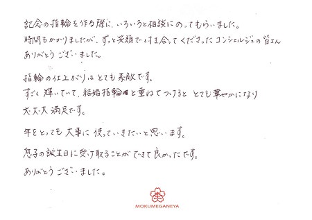 家族への想いが沢山つまった指輪に感動しました。神奈川県 K.O様 K.O様(お渡し担当:田中)