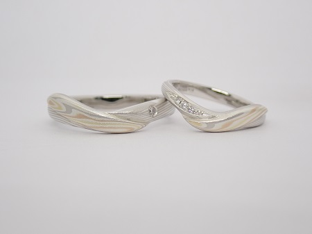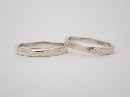 結婚指輪(マリッジリング)の木目金素材:プラチナ×ピンクゴールド×シルバー