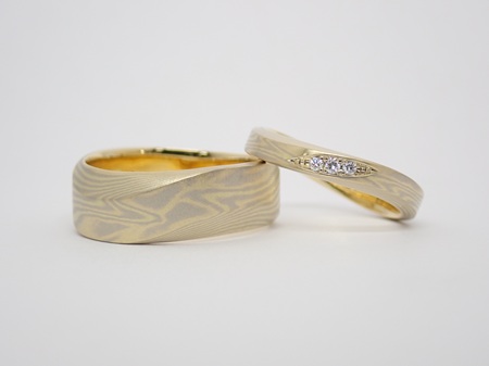 結婚指輪(マリッジリング)の木目金素材:ホワイトゴールド×イエローゴールド×グリーンゴールド