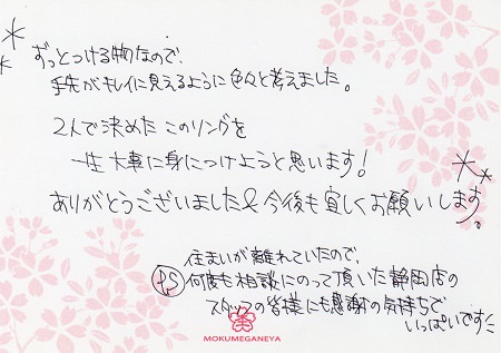 自分たちのイメージ通りの指輪ができて大変満足しています。