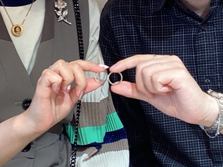 木目模様が他のブランドとは違い、特別な2人だけのリングが作れました。 埼玉県 K.T様 N.T様(お渡し担当:柴田)