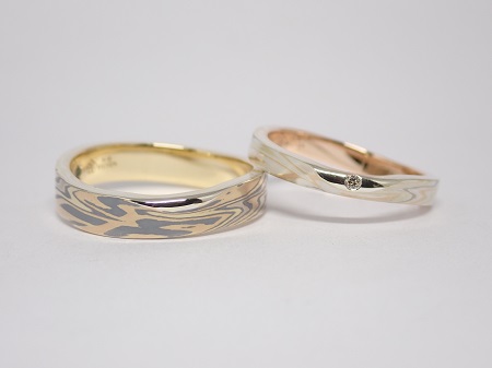 結婚指輪(マリッジリング)の木目金素材:ピンクゴールド✕シルバー