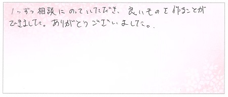 完成した実物を見たら、写真で見るよりもよく、満足しております。