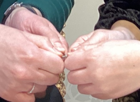 完成したリングを手にしてやっぱり杢目金屋さんに