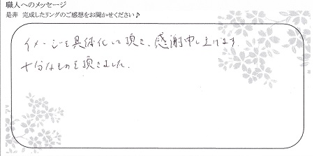 とてもキレイで見ているだけで幸せになれます。 東京都 T.M様 A.M様 (お渡し担当:森)