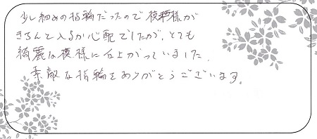 さくらダイヤモンドや木目模様など和風のイメージ通りのリングができとても感謝しています。