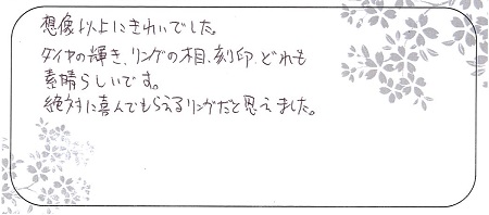 期待以上の指輪を作って頂き、ありがとうございました。