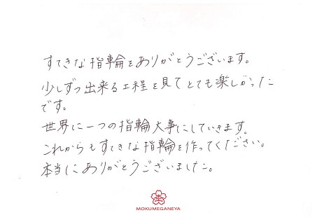 私が求めていた理想の指輪を作って頂きありがとうございます。