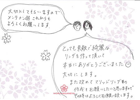 2人の想いをカタチにした世界に1組だけの結婚指輪をオーダー頂きました 和歌山県 憲司様 依里様(お渡し担当:村野)