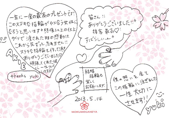 プラチナの婚約指輪をオーダーいただきました 宮城県 公雄様 舞様 (お渡し担当:布田)
