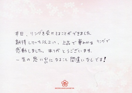 想像以上にかわいい、キレイなリングでした 静岡県T.K様M.O様 (お渡し担当:日比))