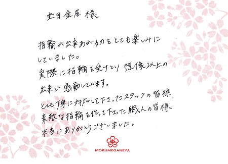 素敵な指輪をありがとうございました。茨城県 T.S様 H.S様 (お渡し担当:山本)