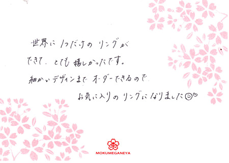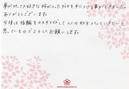 希望日にリングを仕上げて頂きありがとうございます。 宮城県 R.T様(お渡し担当:白岩)