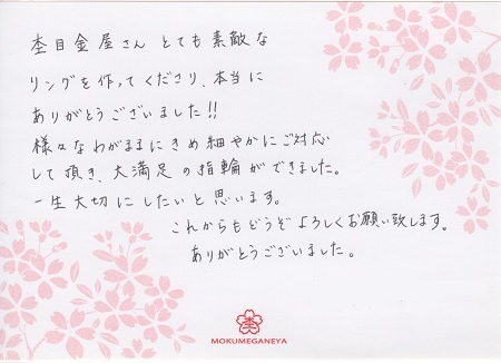 さくらダイヤモンドの婚約指輪をオーダーメイドいただきました 東京都 悠太様 真緒様(お渡し担当:松岡)