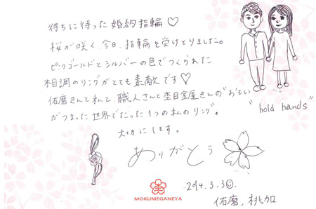 2人の想いを形にした世界に1組だけの結婚指輪をオーダー頂きました