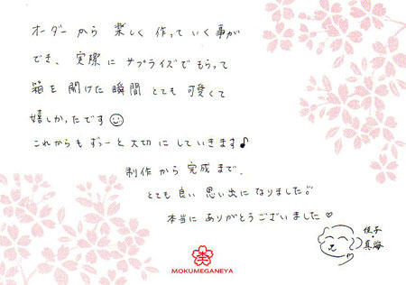 プラチナの婚約指輪をオーダーメイドいただきました 愛知県 R.M様 R.M様 (お渡し担当:角田)