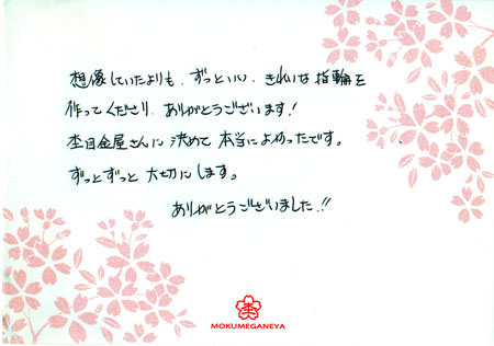 素敵な婚約指輪を作ってくださり、ありがとうございました。