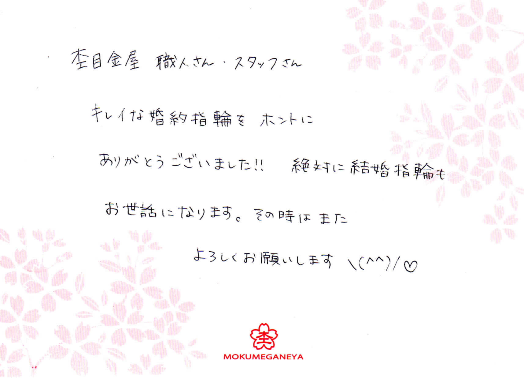 この度は私達の婚約 結婚指輪を製作して頂きありがとうございました。