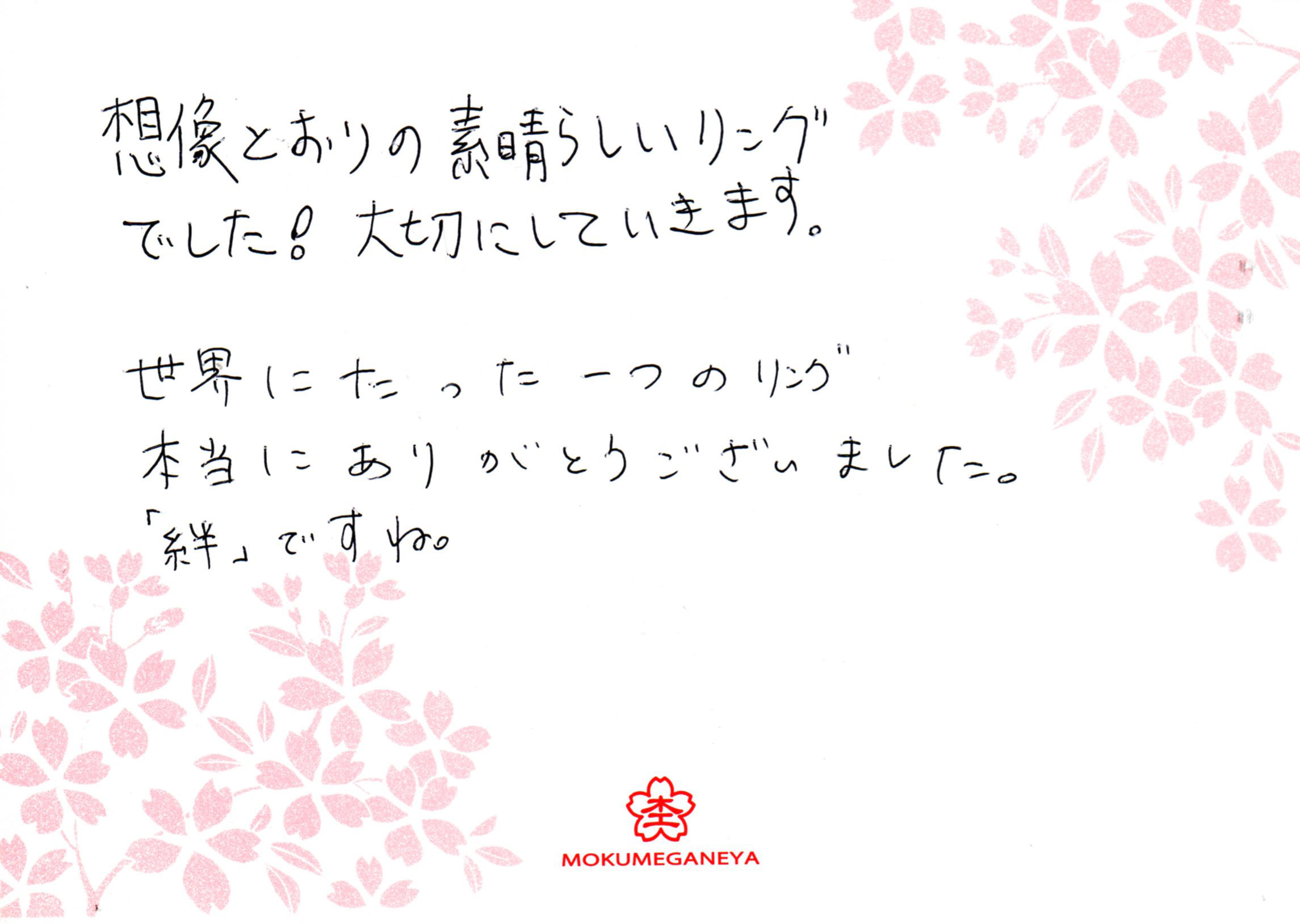 嬉しく思います。2人の一生の記念に残る指輪を