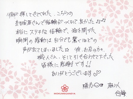 ステキなリングをありがとうございました!