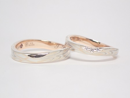 結婚指輪(マリッジリング)の木目金素材:ホワイトゴールド×ピンクゴールド×シルバー