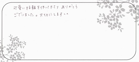 この度は急な希望でリングを作成して頂きご迷惑をおかけしました。