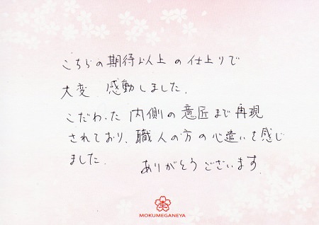 杢目金屋の指輪に憧れていたので嬉しい気持ちでいっぱいです。 静岡県 T.M様C.A様 (お渡し担当:渡邉)
