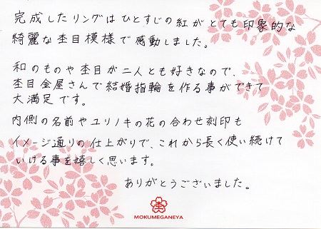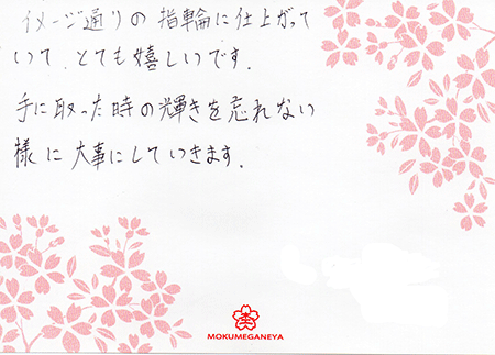 期待以上の素晴しいリング 静岡県 T.N様 (お渡し担当:岩石)