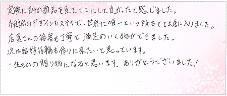 満足のいく指輪を作ることができました。