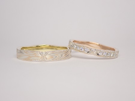 結婚指輪(マリッジリング)の木目金素材:ホワイトゴールド×ピンクゴールド×シルバー