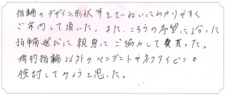 丁寧なご説明で私たちにピッタリの指輪になりました。