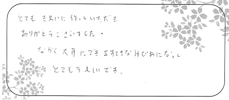 想像以上に輝いていた為とても満足しました。 千葉県 T.W様(お渡し担当:岩瀬)