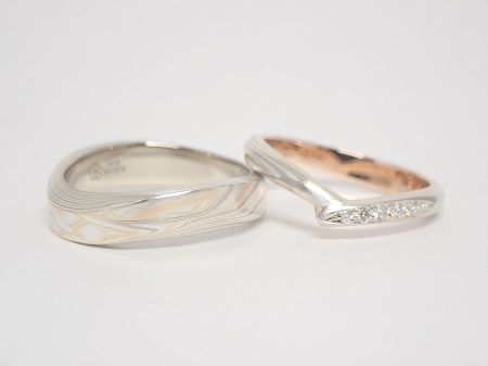 結婚指輪(マリッジリング)の木目金素材:ホワイトゴールド×ピンクゴールド×シルバー