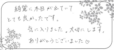 この度は素敵な指輪をつくっていただきありがとうございました。