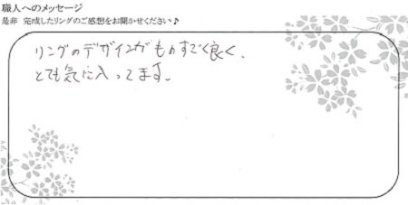 世界に2つとない素敵な指輪を作っていただきありがとうございます。