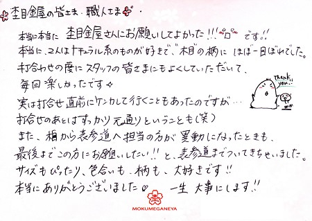 とてもきれいだと思いました。 千葉県 M.K様 (お渡し担当:野﨑)