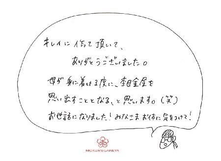 丁寧に仕上げていただいて本当にありがとうございました。