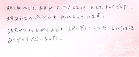 とても綺麗でずっと大切にしていこうと思いました。 埼玉県 K.N様 M.M様(お渡し担当:志鶴)