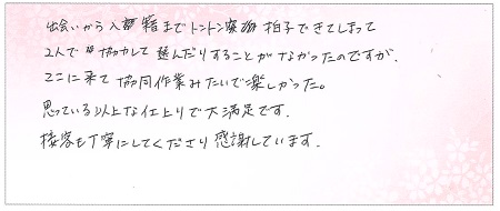 完成したリングも期待以上のもので、購入して良かったと思います。 埼玉県 R.O様 A.S様(お渡し担当:志鶴)