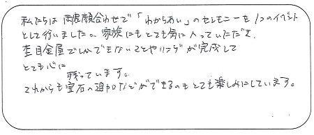 思っている以上な仕上りで大満足です。 埼玉県 T.K様 S.K様(お渡し担当:石井)