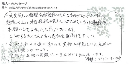 すてきなリングに仕上げていただいてありがとうございます。