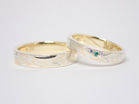 結婚指輪(マリッジリング)の木目金素材:ホワイトゴールド×ピンクゴールド×グリーンゴールド×シルバー