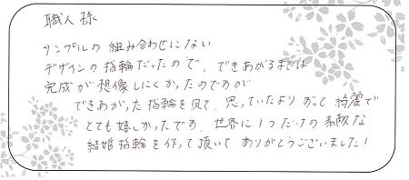 この度は、ステキな指輪を作成いただき誠にありがとうございます。