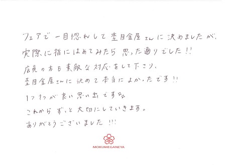 自分達好みの指輪ができあがってきて大満足です♪ 埼玉県N.O様 S.O様 (お渡し担当:船越)